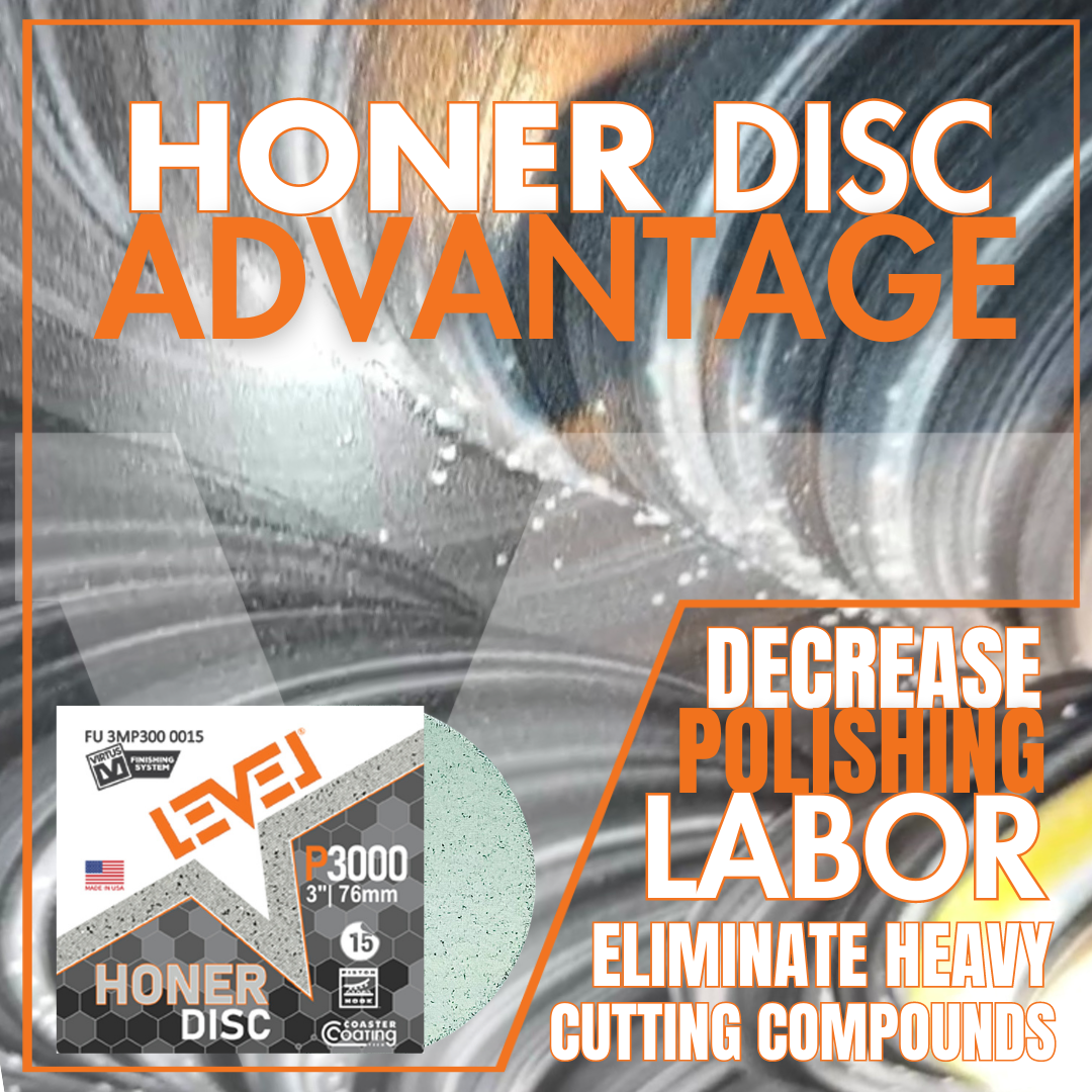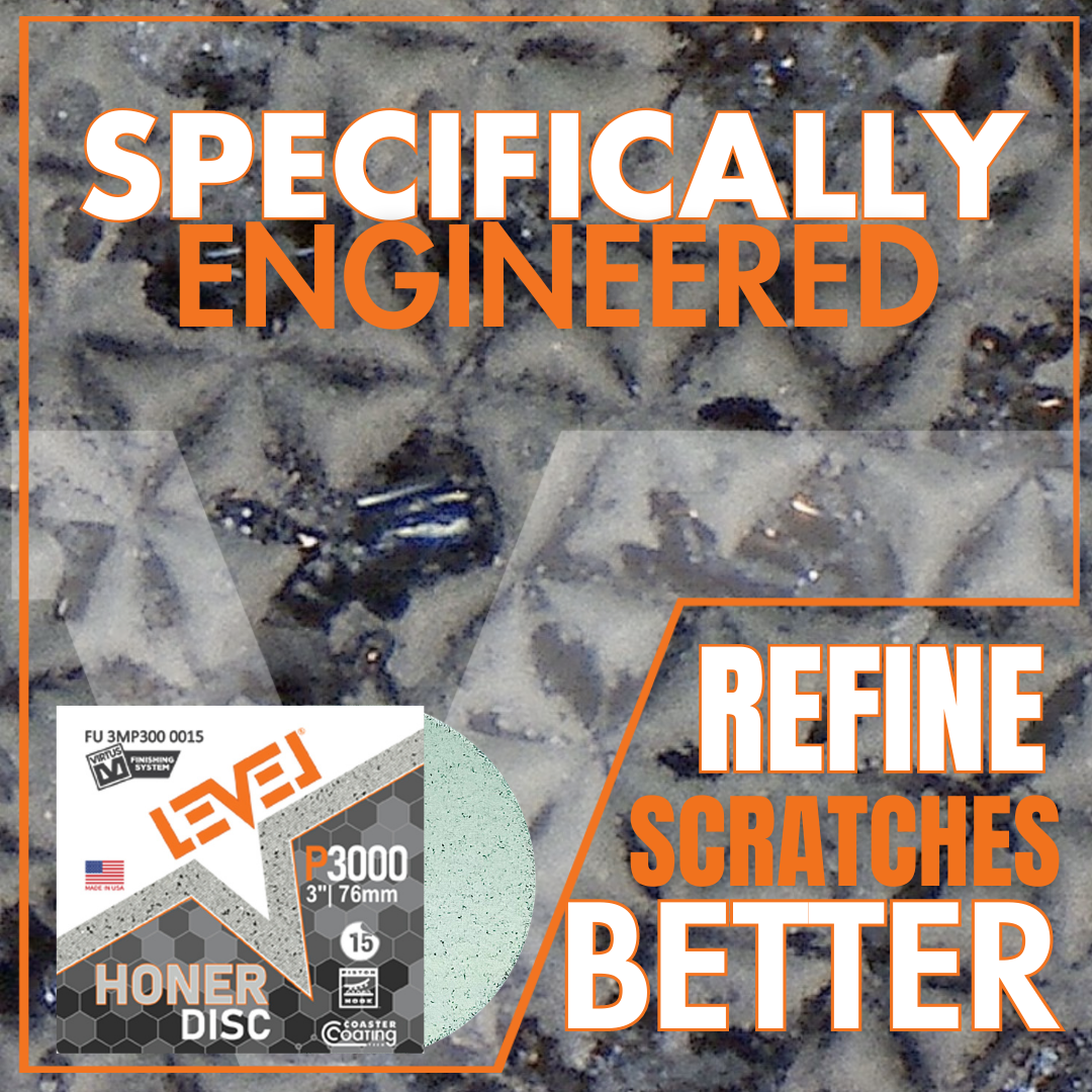 HONER DISCS are specifically engineered to refine sand scratches (p1200-p2500) on painted surfaces to reduce the amount of time spent polishing and eliminate the need for cutting compounds. The foam-backed discs provide consistent contact with the surface, leveling the surface, and leaving perfectly uniform scratches for quick and easy polishing.
