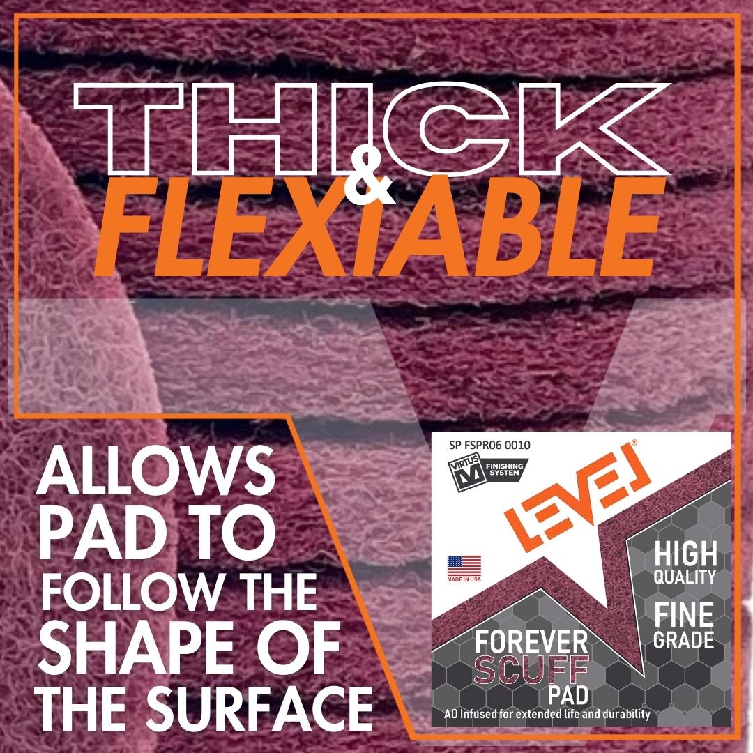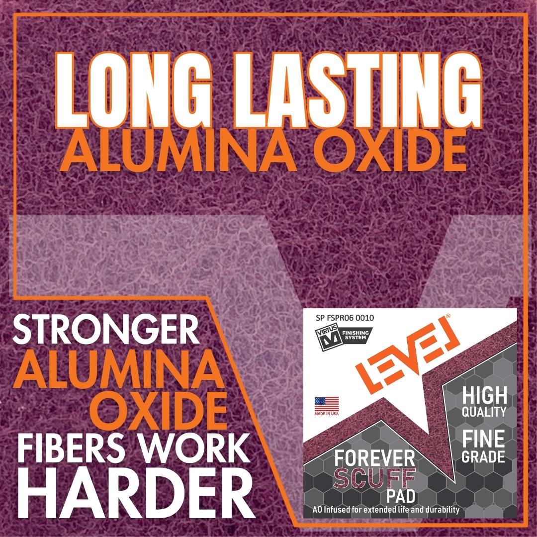 FOREVER SCUFF Pads are designed to scuff the surface after more aggressive sanding has removed surface defects. FOREVER SCUFF Pads have long-lasting thick alumina oxide coating to keep these pads scuffing 2 to 3 times longer than comparable pads. The thick, flexible design allows the pad to follow the shape of the surface to reduce the time needed the get the job done. The high-quality materials and high absorbent construction work longer and perform better. FOREVER SCUFF Pads are packed 25 in a box.