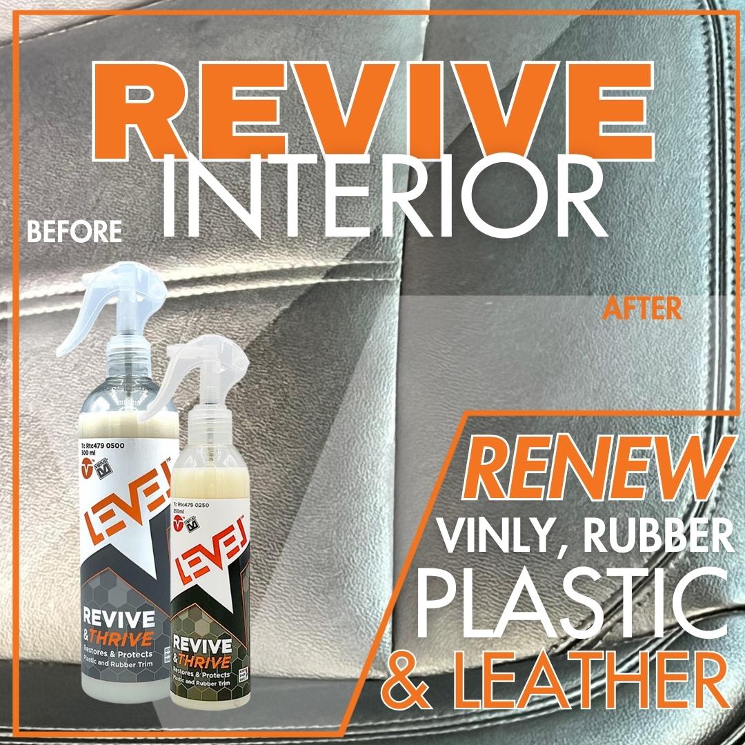 • EASY TO APPLY: Effortlessly achieve professional results with the user-friendly formula of LEVEL Revive & Thrive plastic restorer for cars. Simply spray our plastic restorer for cars directly on the surface or apply it with a pad, wipe it in, and buff it off.