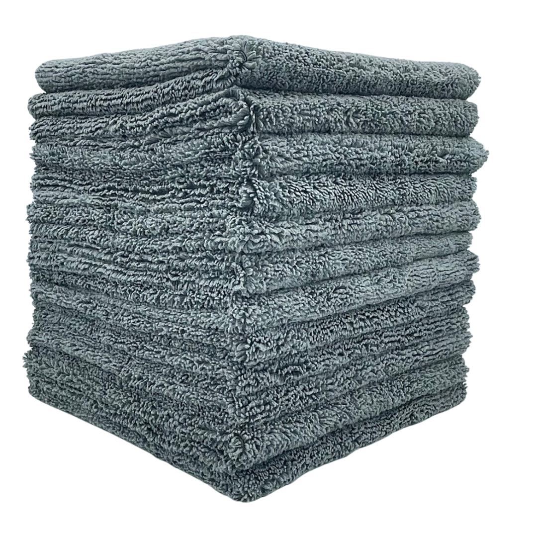 These 380 GSM terry weave microfiber cleaning towels measure 16 by 16 inches. Now with ultrasonic cut meaning no surged edges on the towels, resulting in smoother and more efficient cleaning and drying. The towels maintain their shape with perfect square corners. Automotive detailers and enthusiasts will be happy to know that there are no labels sewn on these towels, so no risk to scratch the paint. These ultrasoft microfiber towels will leave a clean, dry, and polished surface. Soft cloths are safe to use on all surfaces around the home, car, RV, motorcycle, aircraft or boat. In addition, these microfiber towels are especially adept at cleaning without the use of chemicals. Use them dry, and they will work like magic without scratching, linting or streaking. Use them wet and they will absorb seven to eight times their own weight in water. Due to their superior quality, these microfiber towels can be washed and reused hundreds of times. Care instructions: Machine wash. Tumble dry low, and do not iron. Do not use fabric softener as this would clog the microfibers and reduce performance. Do not use chlorine bleach. Wash with other non-linting materials to maintain proper dirt-gripping properties.